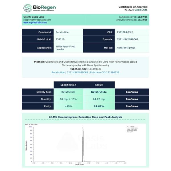 This product is strictly FOR RESEARCH USE ONLY and is intended exclusively for in vitro research and laboratory experimentation by qualified professionals. It is not a drug, food, cosmetic, or dietary supplement, and has not been evaluated by the FDA. This peptide is not intended to diagnose, treat, cure, or prevent any disease. The bodily introduction into humans or animals is strictly prohibited by law. Any misuse, misbranding, or mislabeling is a violation of federal regulations and may result in legal action under applicable federal, state, or local laws.