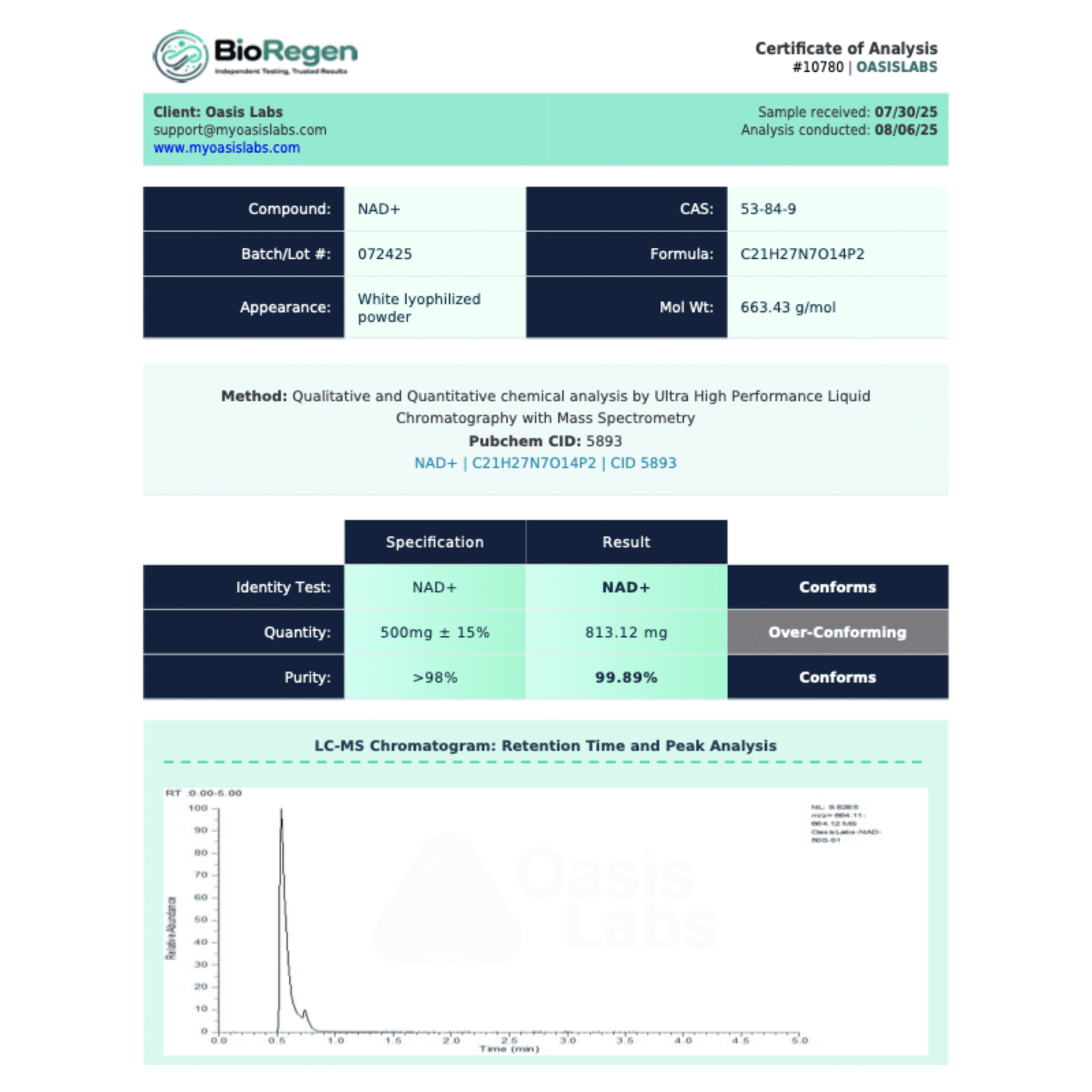 NAD+ (Nicotinamide Adenine Dinucleotide) is an essential coenzyme present in all living cells, extensively researched for its critical role in cellular energy metabolism, mitochondrial function, and DNA repair processes. As a key electron carrier involved in redox reactions, NAD+ supports ATP synthesis and energy production at the cellular level. Supplied in lyophilized powder form, NAD+ facilitates research focused on metabolic regulation, cellular aging, mitochondrial efficiency, and regenerative processes.